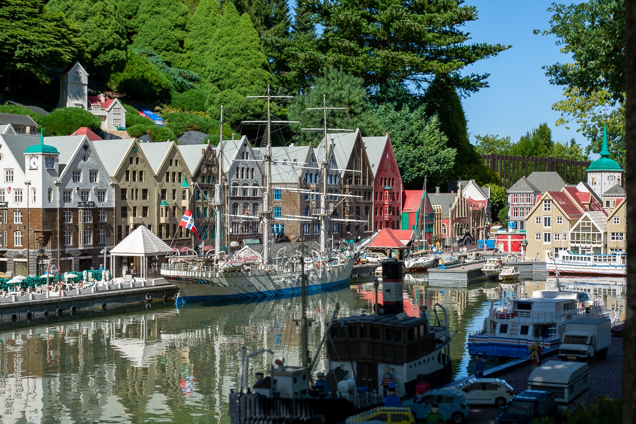 Bilder vom Legoland in Billund (Dänemark), aufgenommen am 08.07.2018. Das Legoland in Billund ist ein Freizeitpark, der 1968 von Ole Kirk Christiansen, dem Gründer von LEGO, eröffnet wurde. Im Zentrum stehen faszinierende Miniaturwelten, in denen weltberühmte Städte und Sehenswürdigkeiten aus LEGO nachgebaut sind. Der Park bietet zudem eine Vielzahl von Fahrgeschäften für alle Altersgruppen und lädt Besucher dazu ein, eigene LEGO-Kreationen zu bauen - Teil 3.