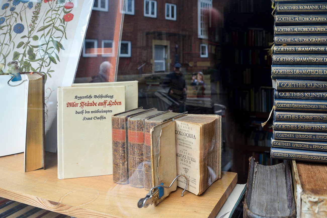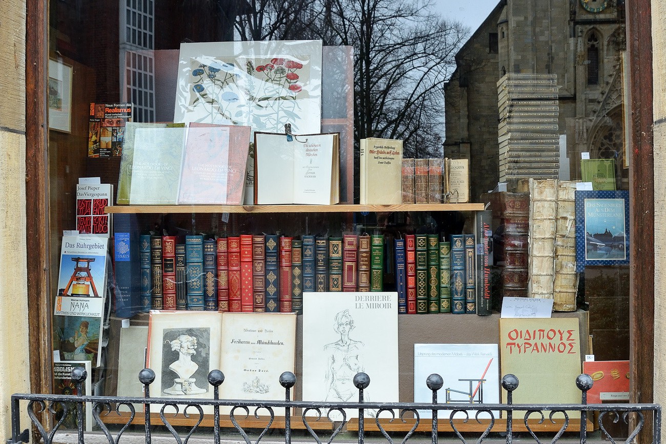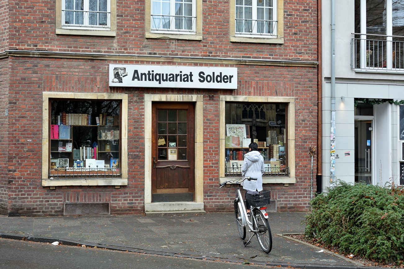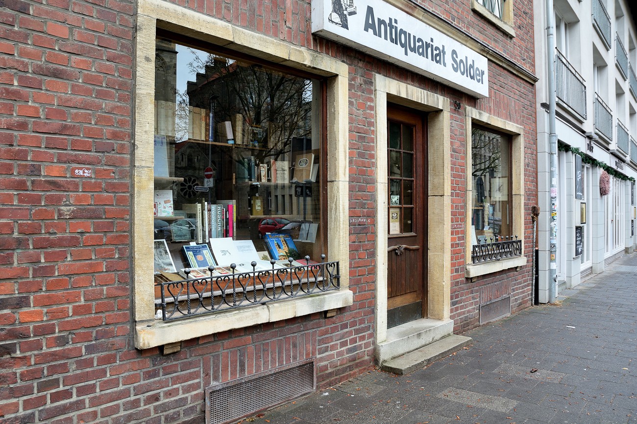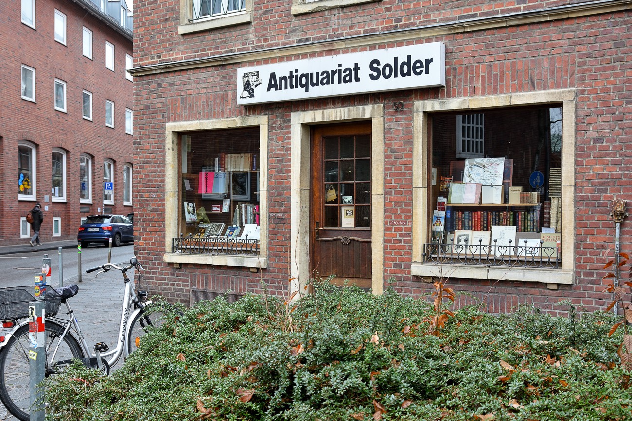 Bilder vom "Wilsberg" Drehort (Antiquariat Michael Solder) in Münster, aufgenommen 2018/19. Das Antiquariat Solder bietet eine Sammlung von etwa 10.000 antiquarischen Büchern, darunter alte Drucke, bibliophile Ausgaben, besondere Verlage, Editionen, Einbände. Das Antiquariat ist auch bekannt für seine Rolle in der ZDF-Krimiserie “Wilsberg”. Seit 1998 ist das Antiquariat von Michael Solder in der Serie zu sehen. Adresse: Frauenstraße 49, 48143 Münster.