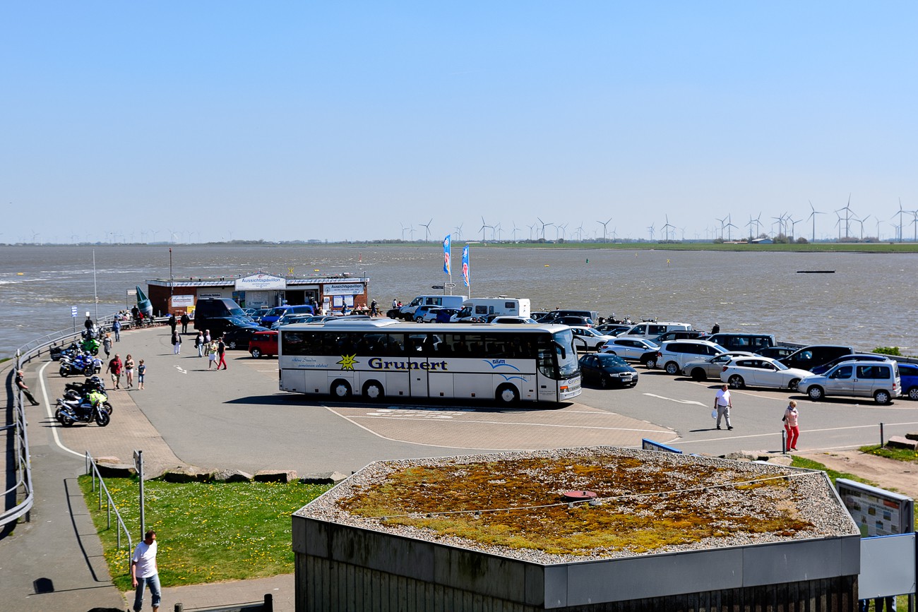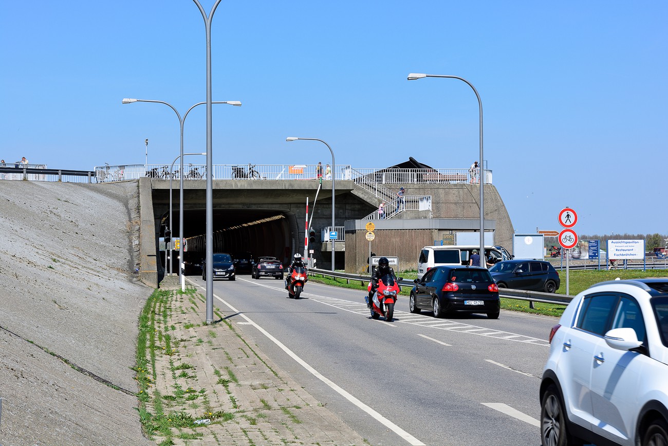 Bilder vom Eidersperrwerk an der Nordsee, aufgenommen 2016. Das Eidersperrwerk ist ein bedeutendes Hochwasserschutz- und Küstenschutzprojekt in Schleswig-Holstein, Deutschland. Es wurde 1973 fertiggestellt und besteht aus einem Sperrwerk, das bei Sturmfluten geschlossen werden kann, um das Eindringen von Nordseewasser in die Eidermündung zu verhindern. Das Sperrwerk dient auch als Straßen- und Bahnverbindung zwischen den Inseln Eiderstedt und Nordstrand.