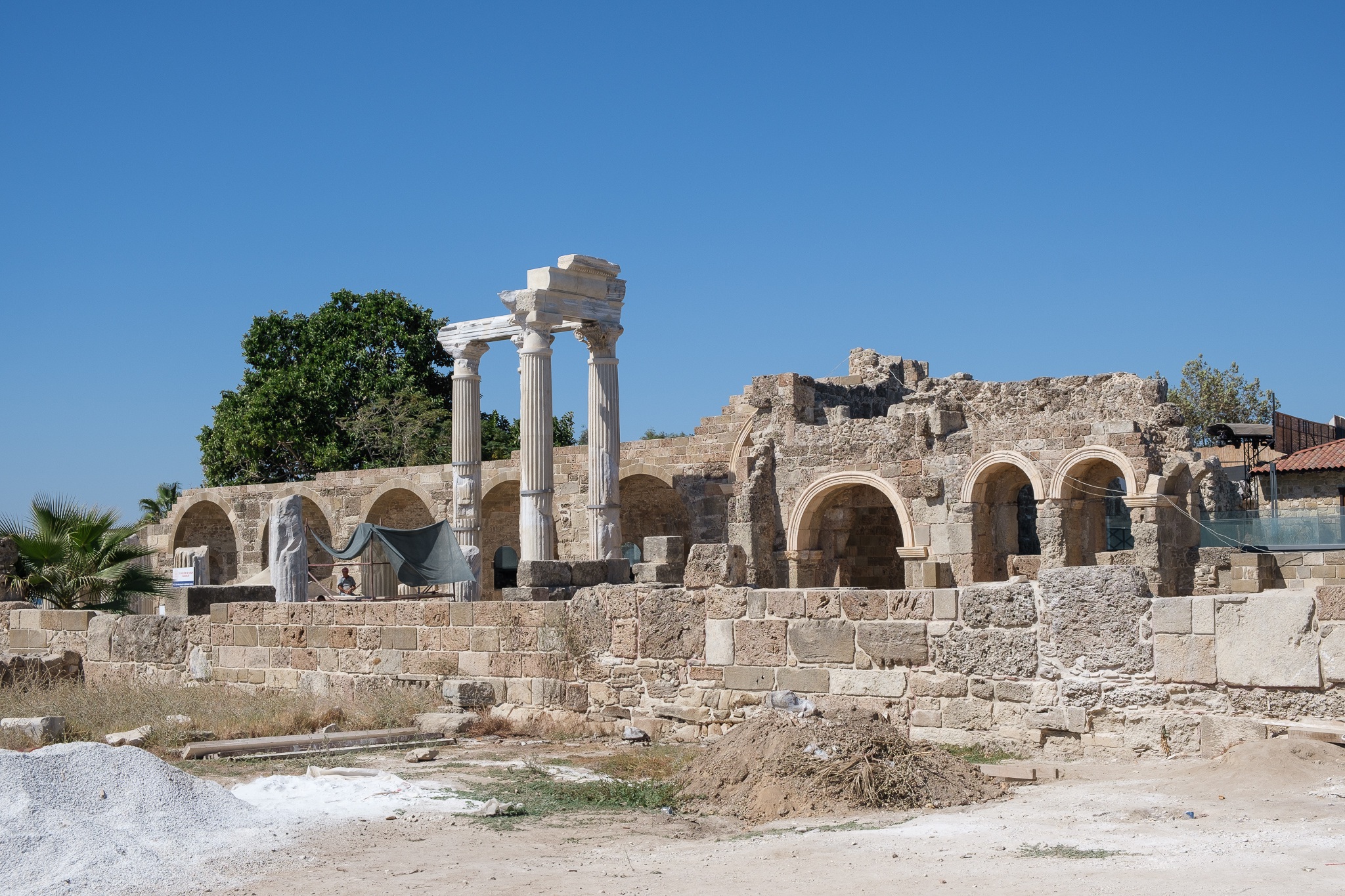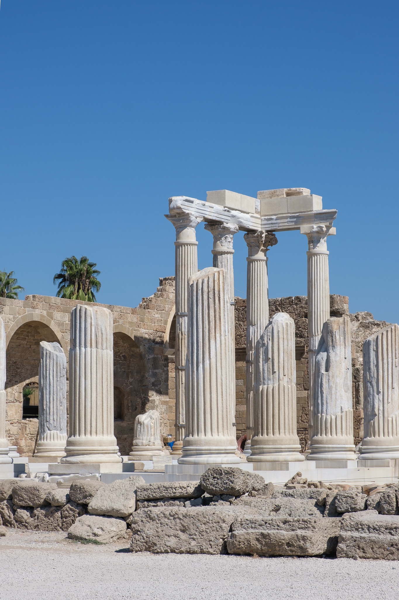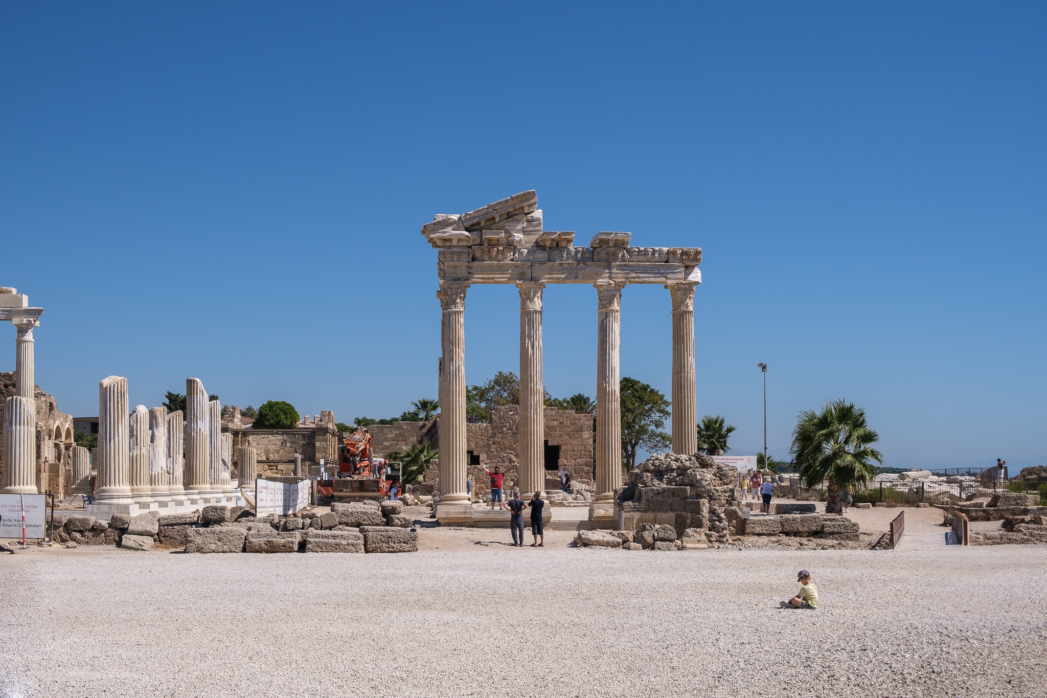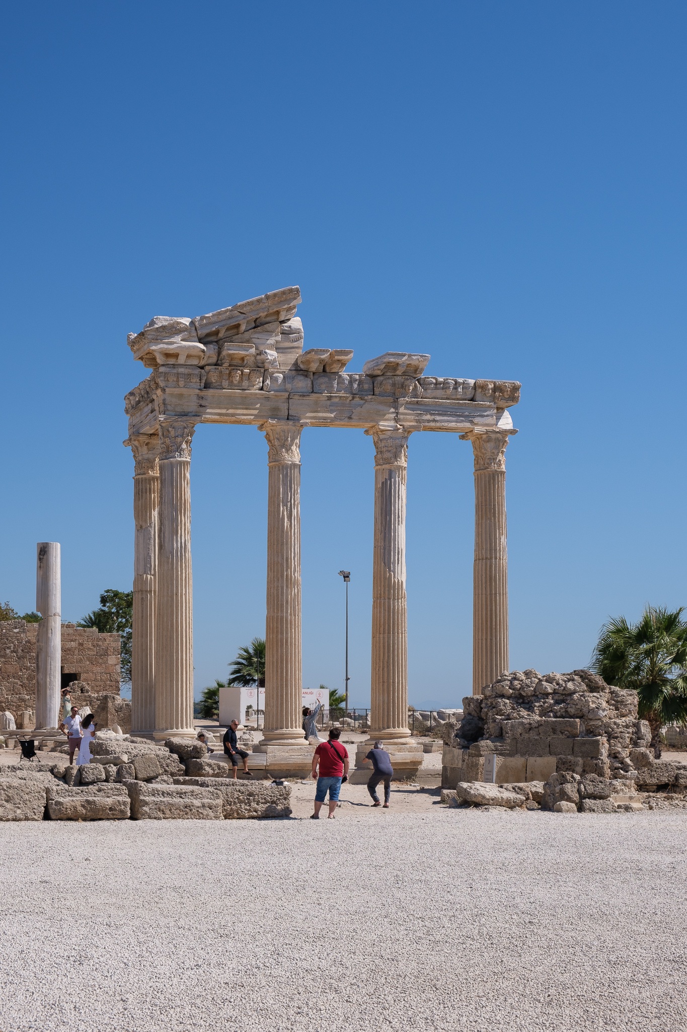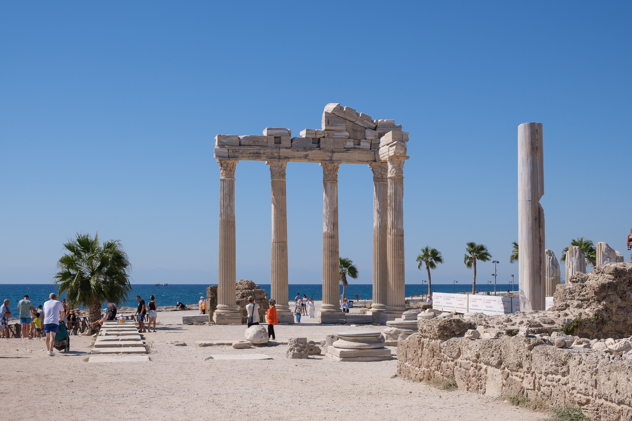 Der Apollon-Tempel im türkischen Side ist ein beeindruckendes Zeugnis der antiken Baukunst und eine der bekanntesten Sehenswürdigkeiten an der türkischen Riviera. Ursprünglich um das 2. Jahrhundert n. Chr. erbaut, erhebt sich das Heiligtum des Sonnengottes Apollon mit seinen markanten Säulen majestätisch am Meer und bietet besonders bei Sonnenuntergang eine spektakuläre Kulisse. Die Bilder, die im September 2024 aufgenommen wurden, fangen die harmonische Kombination aus antikem Erbe und natürlicher Schönheit ein und zeigen den Tempel im weichen, warmen Licht des Spätsommers.