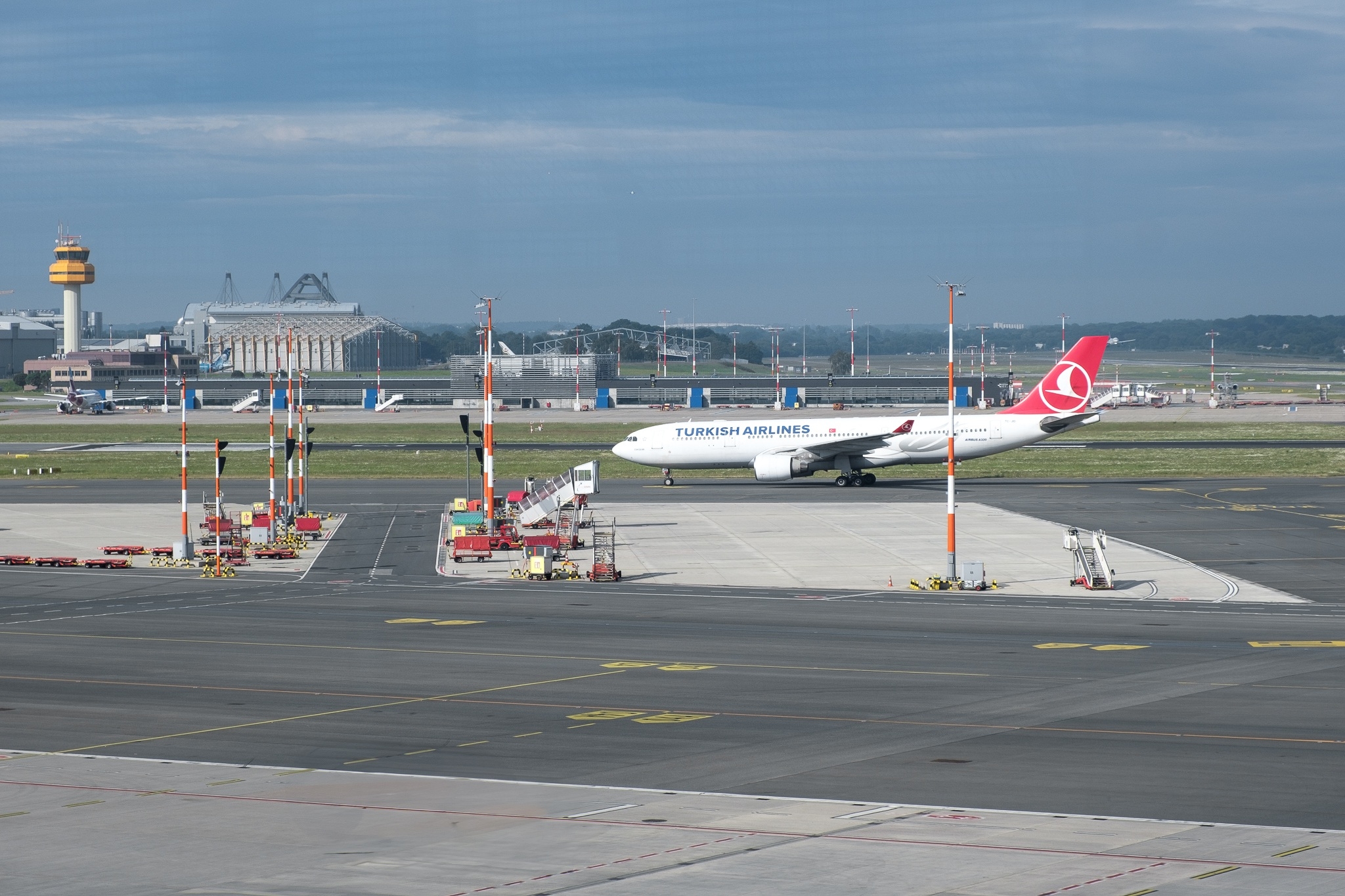 Bilder von Flugzeugen auf dem Flughafen in Hamburg, aufgenommen am 19.05.2024. Der Flughafen Hamburg, offiziell "Hamburg Airport" oder "Flughafen Hamburg Helmut Schmidt", ist der älteste Flughafen Deutschlands und spielt eine zentrale Rolle im norddeutschen Luftverkehr. Gelegen etwa 8,5 Kilometer nördlich des Stadtzentrums, verbindet er die Hansestadt mit nationalen und internationalen Zielen. Mit modernen Einrichtungen und einer Kapazität von über 17 Millionen Passagieren pro Jahr ist der Flughafen ein wichtiger Knotenpunkt für Touristen und Geschäftsreisende gleichermaßen.