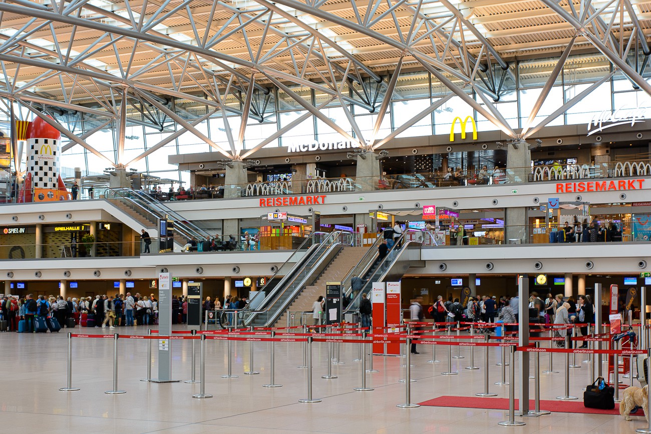 Bilder vom Flughafen in Hamburg, aufgenommen 2015/16. Der Flughafen Hamburg, offiziell "Hamburg Airport" oder "Flughafen Hamburg Helmut Schmidt", ist der älteste Flughafen Deutschlands und spielt eine zentrale Rolle im norddeutschen Luftverkehr. Gelegen etwa 8,5 Kilometer nördlich des Stadtzentrums, verbindet er die Hansestadt mit nationalen und internationalen Zielen. Mit modernen Einrichtungen und einer Kapazität von über 17 Millionen Passagieren pro Jahr ist der Flughafen ein wichtiger Knotenpunkt für Touristen und Geschäftsreisende gleichermaßen.